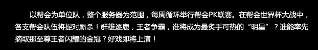 4、世界杯大赛开始后,一方在帮会大赛场景内的人数为0时,自动判负。